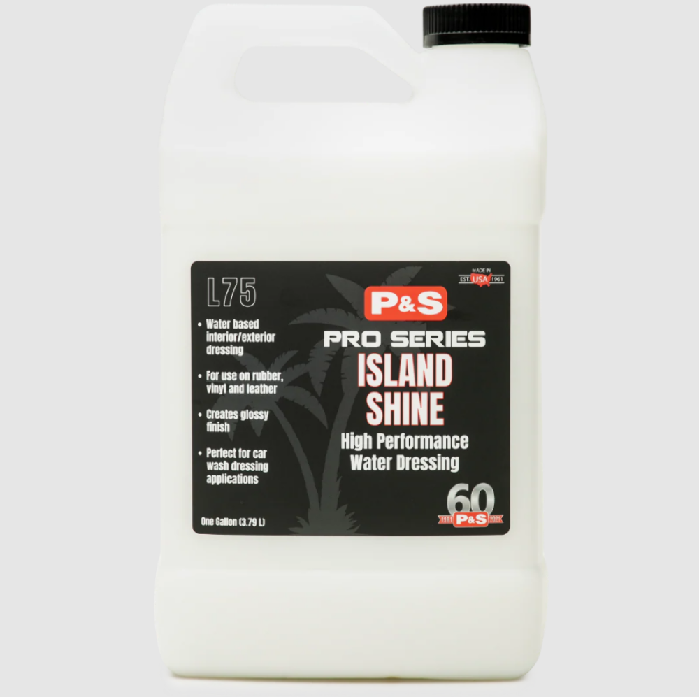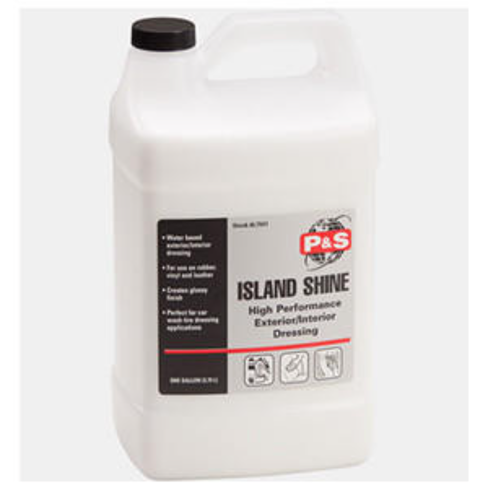 Island Shine conditions, softens, preserves and protects all leather, rubber, vinyl and leather surfaces. Our latest addition to our extensive line of water based dressings was developed to meet the demands of industrial tire dressing applications at car washes. Island Shine produces a glossy finish on tires, and also may be used to dress exterior/interior trim. This exceptional product may be diluted with water if desired.