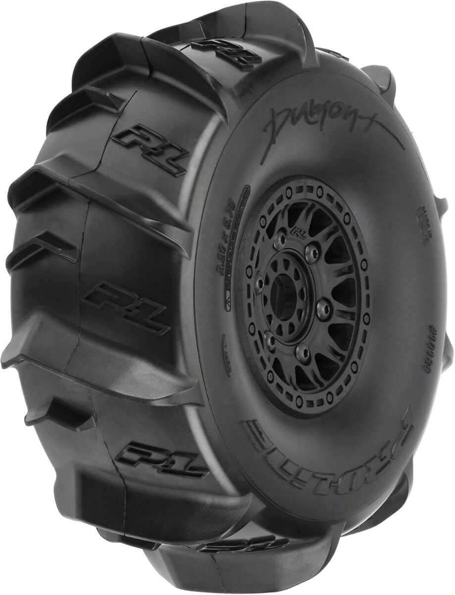 The Dumont Paddle tire uses the latest in paddle tread technology with large offset V-shaped paddles for maximum roosting power. Pro-Line P-L logos have been embedded into the tire carcass giving it the style that you have come to expect from Pro-Line. The Dumont Paddle tire gets its name from the incredible Dumont Sand Dunes in California, but these paddle tires are equally at home shredding your local snowfield in the winter.