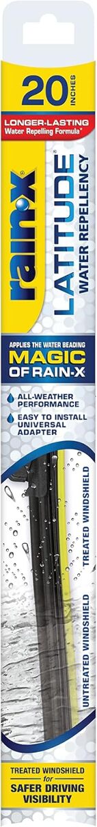The Rain-X 5079277-3 Latitude is a premium 20-inch beam-style wiper blade that provides a unique 2-in-1 solution: it clears your windshield of rain and debris while simultaneously applying a patented water-repelling coating. Unlike traditional blades, the Latitude uses advanced beam technology to provide uniform pressure across the entire length of the blade, ensuring a streak-free wipe even on curved windshields.