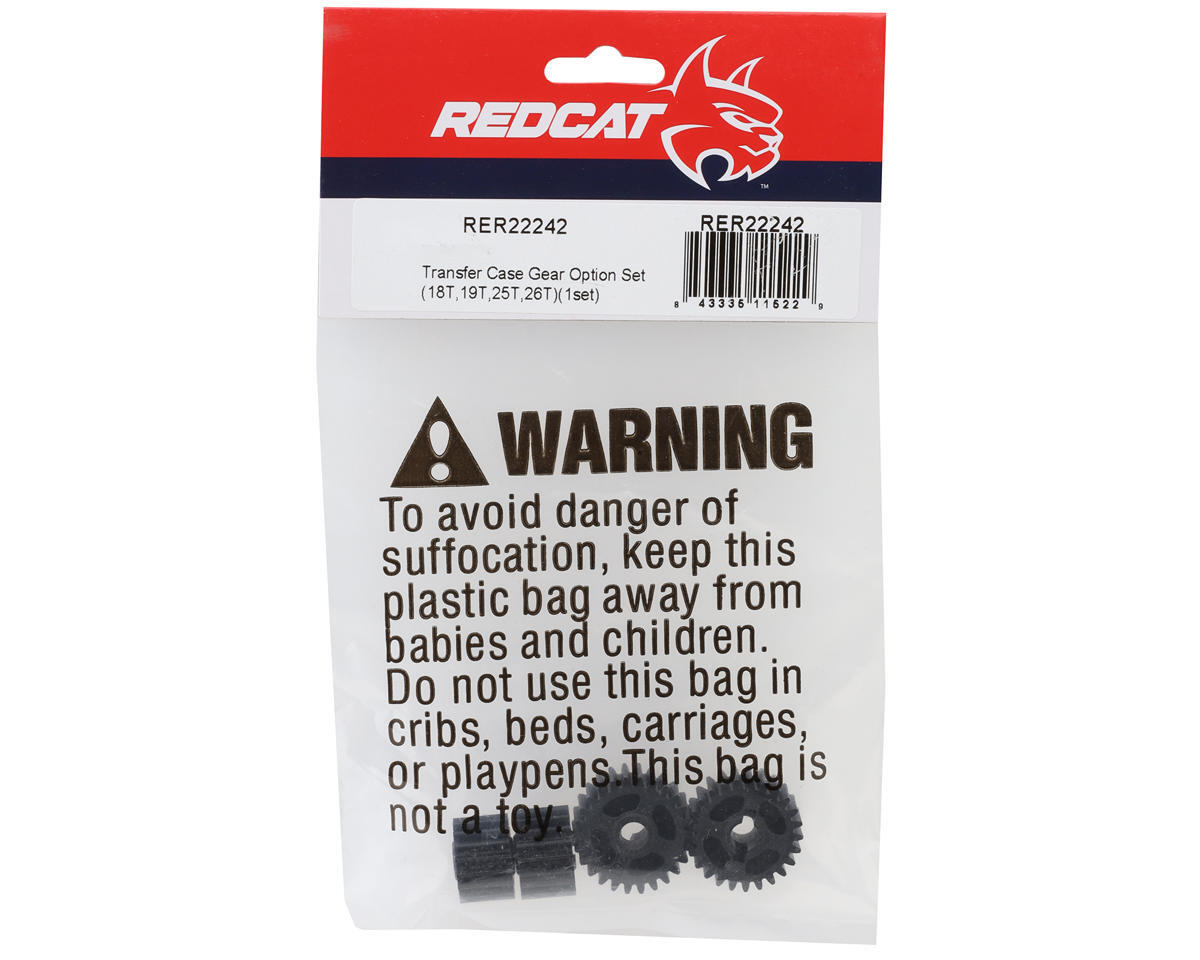 Fine-tune your crawler's performance with the Redcat Racing RER22242 Transfer Case Gear Option Set. This optional kit allows you to adjust the underdrive percentage of your vehicle, which is a critical tuning step for serious rock crawling. By changing these gears, you can make the front wheels spin faster than the rear wheels, which helps the vehicle "pull" through tight turns and prevents the rear end from pushing the front on steep descents.