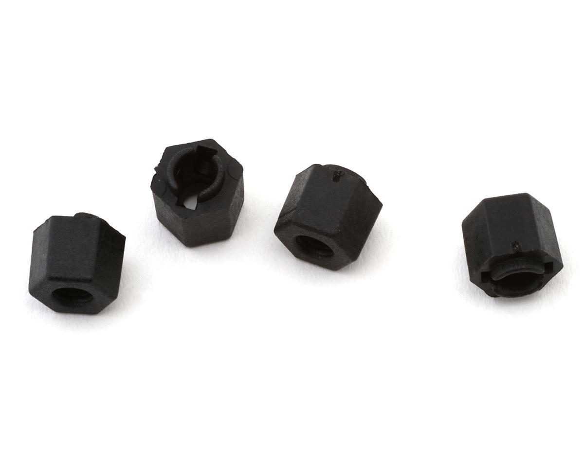 The Redcat Racing RER29165 is a set of standard plastic wheel hexes designed for 1/18 scale RC vehicles. These hexes are the interface between the axle and the wheel, ensuring power is transferred efficiently to the tires. They are precision-molded to provide a snug fit on the axle pins, reducing slop in the drivetrain.