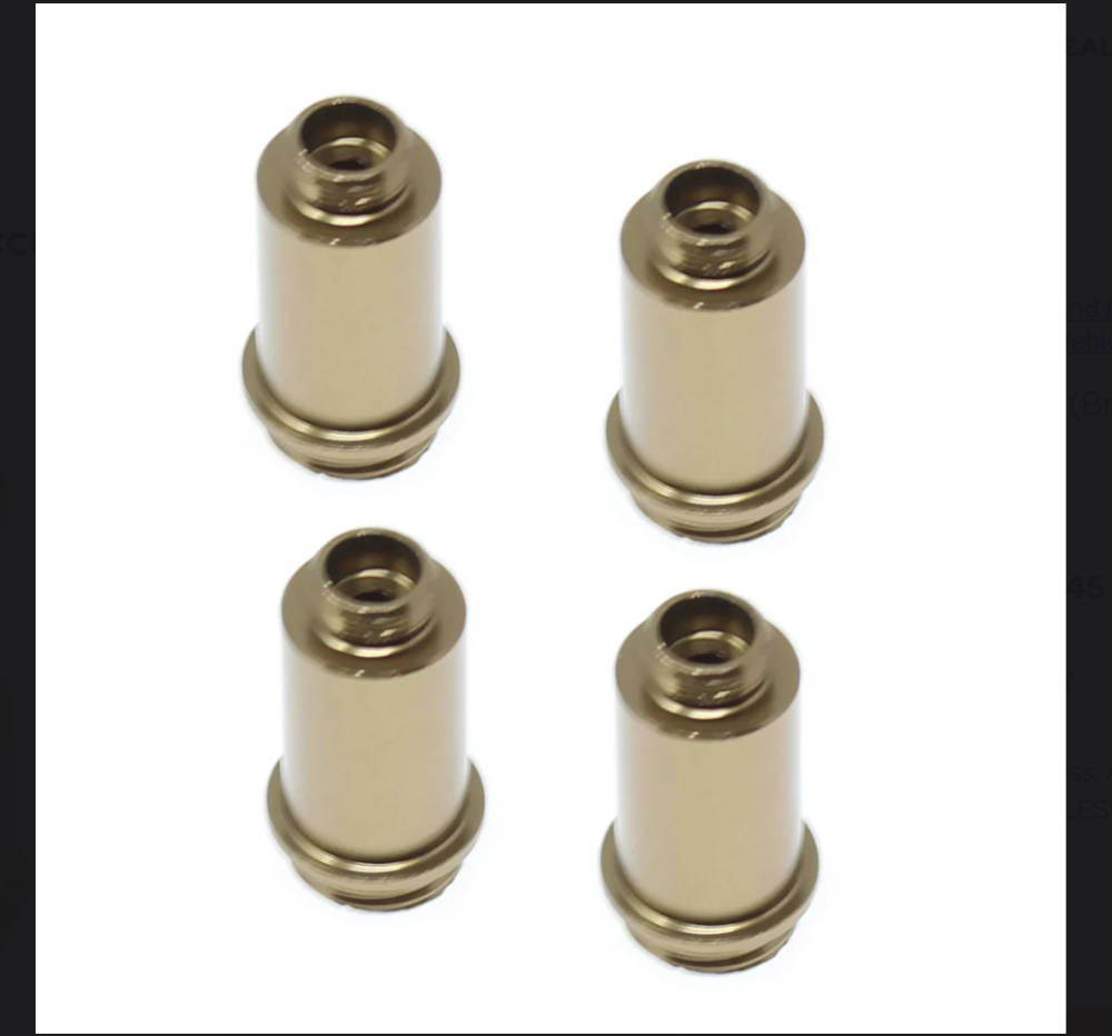 The Redcat Racing RER30382 set features four CNC-machined aluminum shock bodies finished in a subtle, high-end anodized bronze. These are designed to replace the standard plastic shock housings on your 1/18 scale crawler.