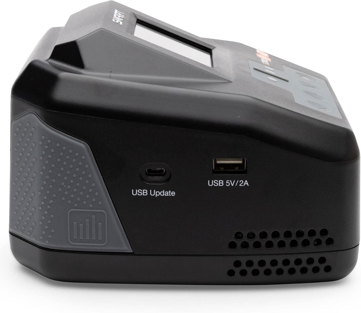 USB input and output ports enable you to charge secondary devices and to update the charger's firmware so you always have the latest features. The S2100 Smart AC Charger also includes an ON/OFF switch, cooling fan, detachable power cord, and sleek case with rubber grips that fits perfectly on your workbench and in your pit or field bag.