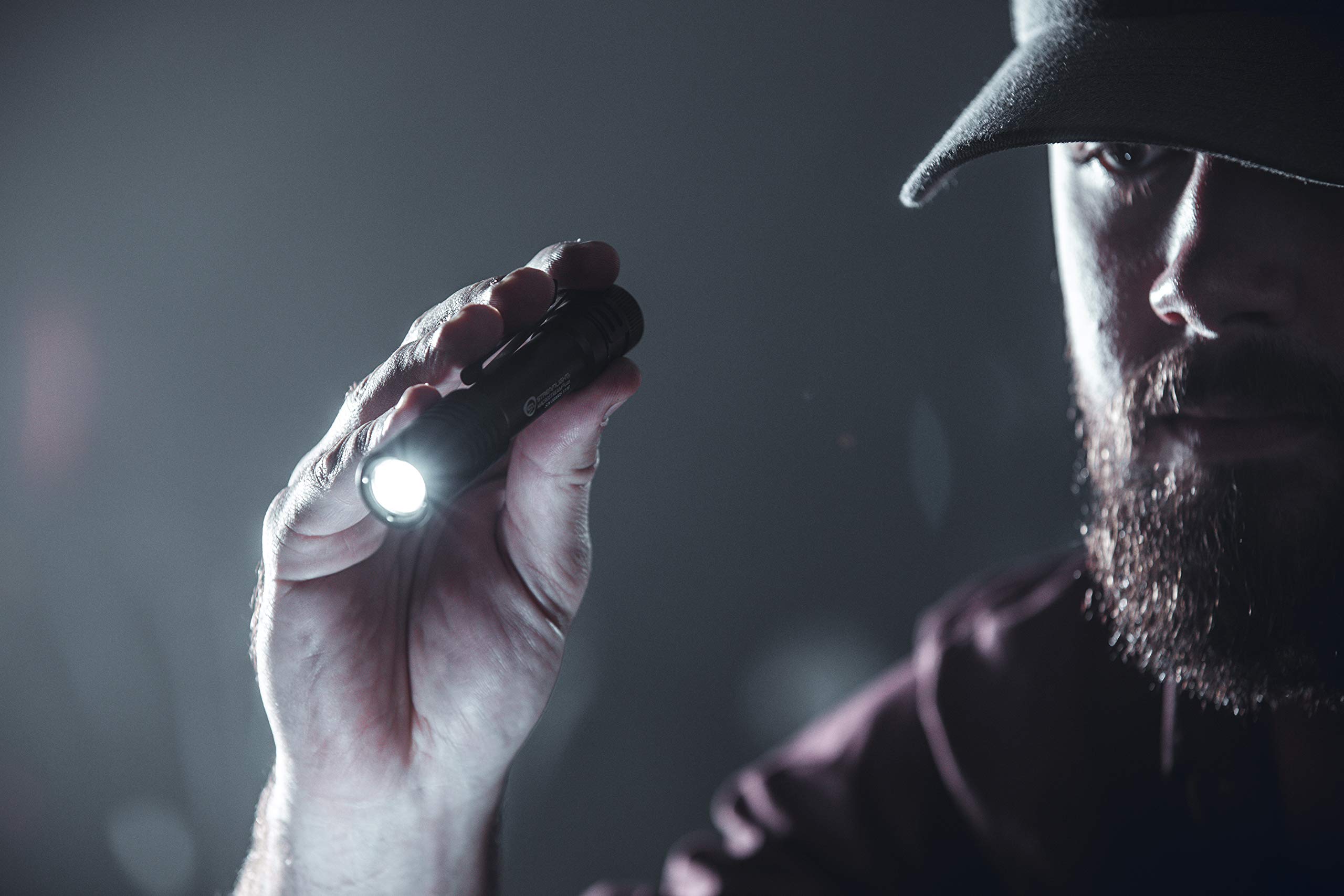 - Durable, anodized machined aluminum construction; Scratch-resistant polycarbonate lens