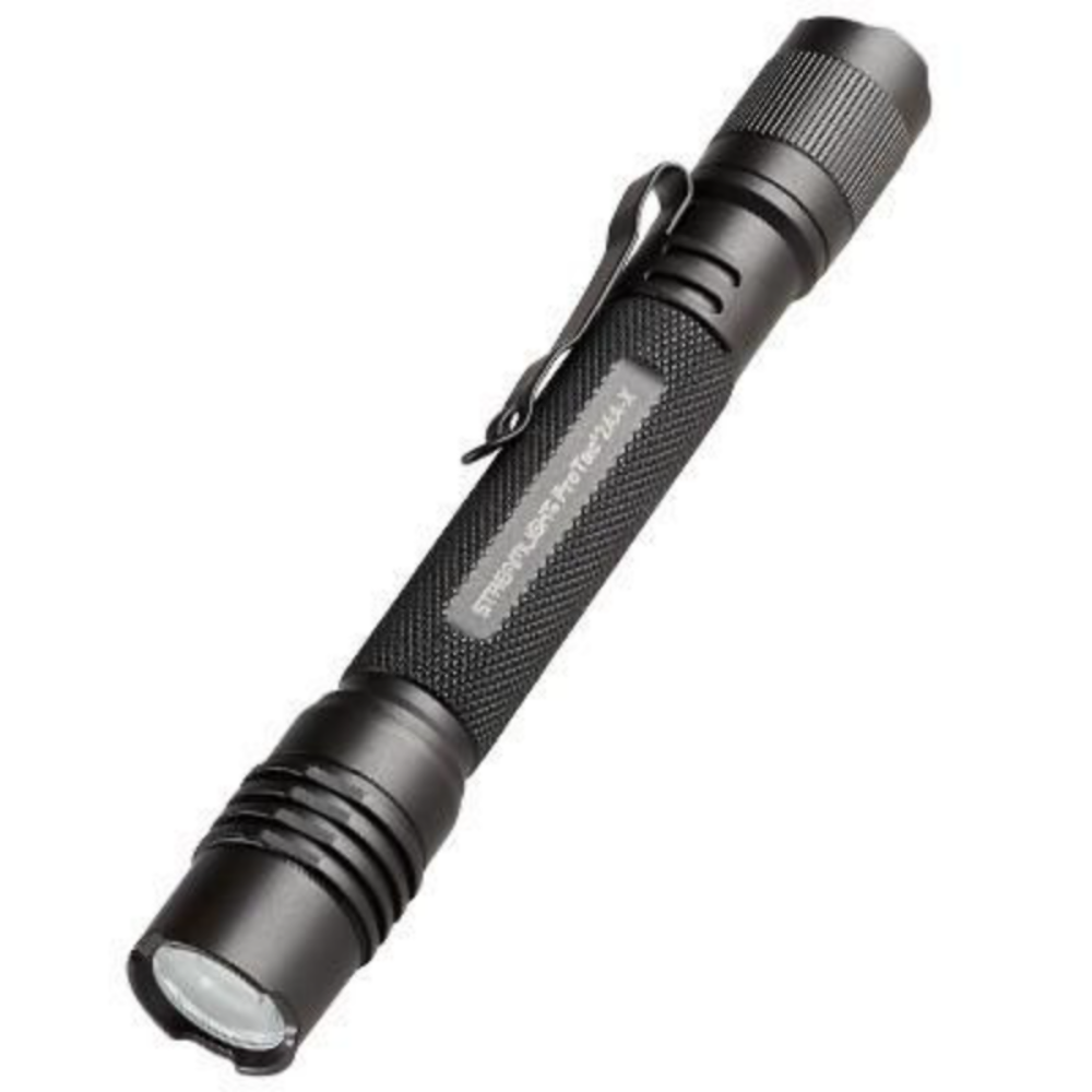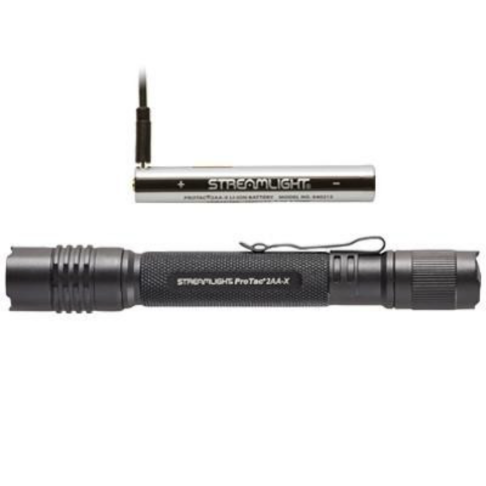 The ProTac® 2AA-X is a slim, tactical flashlight that uses (1) Streamlight USB-C rechargeable battery pack or (2) AA alkaline batteries. About the size of a marker, it conveniently fits in your pocket and produces up to 550 lumens.