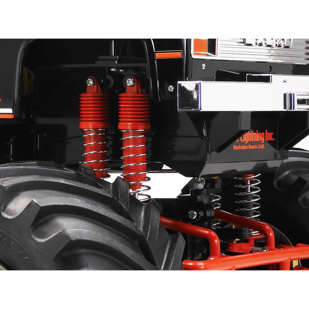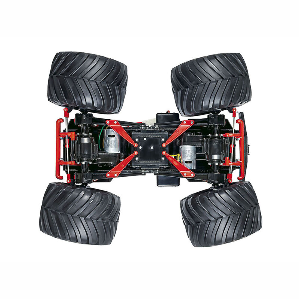 The Super Clod Buster is equipped with two motors and tightly sealed gearboxes that have been molded as one piece with axle housing. Minimum power loss and smooth cornering are obtained thanks to a gear train transmission and differentials. The included Dual Motor ESC provides ample power to get your truck over obstacles. Furthermore, this monster truck is also equipped with a 4WS system for 4-wheel drive steering. This feature makes tight cornering with such a big machine easy!