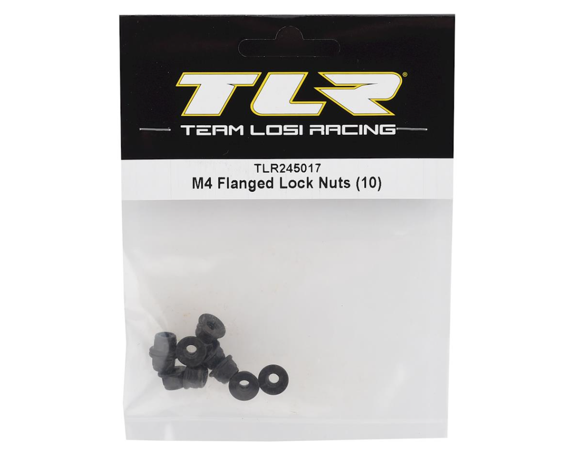 Stock up on the most essential fastener in your pit box with this 10-pack of Steel M4 Flanged Locknuts. Unlike the lightweight aluminum "race" nuts (like TLR236009), these are heavy-duty Steel nuts designed for durability and longevity.