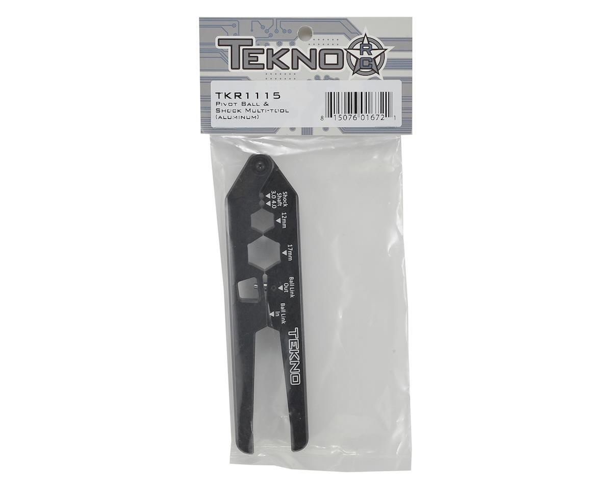 This is the Tekno RC Aluminum Pivot Ball and Shock Multi-Tool. CNC crafted out of high grade aluminum block and anodized in the Tekno signature two tone black/grey finish, this tool will be the star of your pit tool arsenal. With it’s 10mm thick contact patch, it has the ability to hold 3mm – 4mm shock shafts with unmatched grip. There are also 12mm (shock bottom cap) and 17mm (shock bottom and top cap) hex holding areas that are very useful for shock rebuilds. In conjunction with the Tekno 17mm Wheel Wrench/Shock Cap Tool (TKR1116), these tools will provide you with the most effective shock building/rebuilding experience.