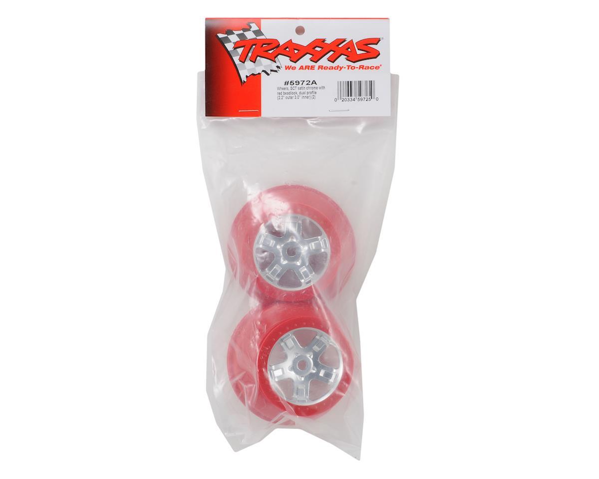 This is a pack of two optional Traxxas SCT Beadlock Wheels in Satin Chrome and Red color. These wheels feature a 2.2" outer and 3.0" inner diameter.