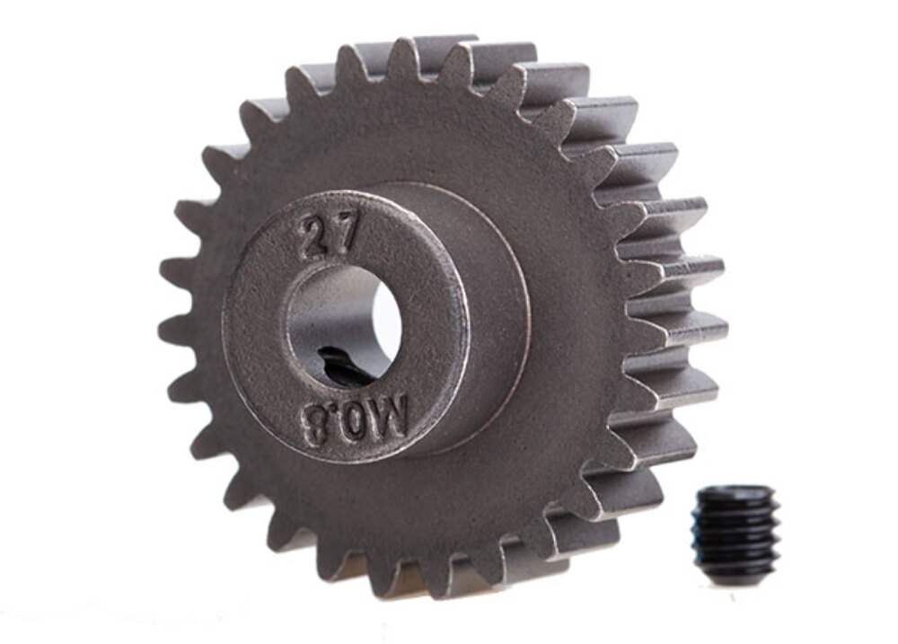 27-tooth pinion gear (32-pitch) fits 5 mm motor shafts and includes set screw. Traxxas pinion gears let you fine-tune the performance of your Traxxas model. Changing gear ratios can help balance acceleration and top speed for different running conditions. Please consult your owners manual for more information on recommended gearing options for your specific model.