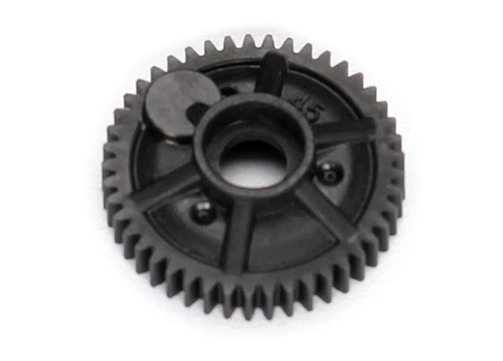 45-tooth spur gear (48-pitch) with telemetry magnet holder. Traxxas spur gears let you fine-tune the performance of your Traxxas model. Changing gear ratios can help balance acceleration and top speed for different running conditions. Please consult your owners manual for more information on recommended gearing options for your specific model.