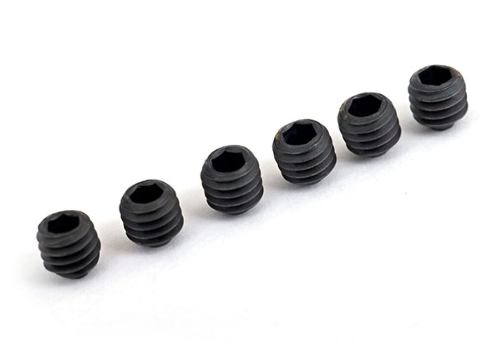 This is a factory-fresh set of Traxxas 4mm Set Screws (Part #4897X), specifically designed for high-stress RC applications such as securing pinion gears, drive cups, and yokes. This package includes six (6) hardened steel screws pre-applied with heavy-duty threadlock to ensure they remain tight under extreme vibrations and high-torque brushless power. Unlike standard grub screws, the 4897X series features a specialized compound that prevents the common "backing out" issue in drivetrain components.