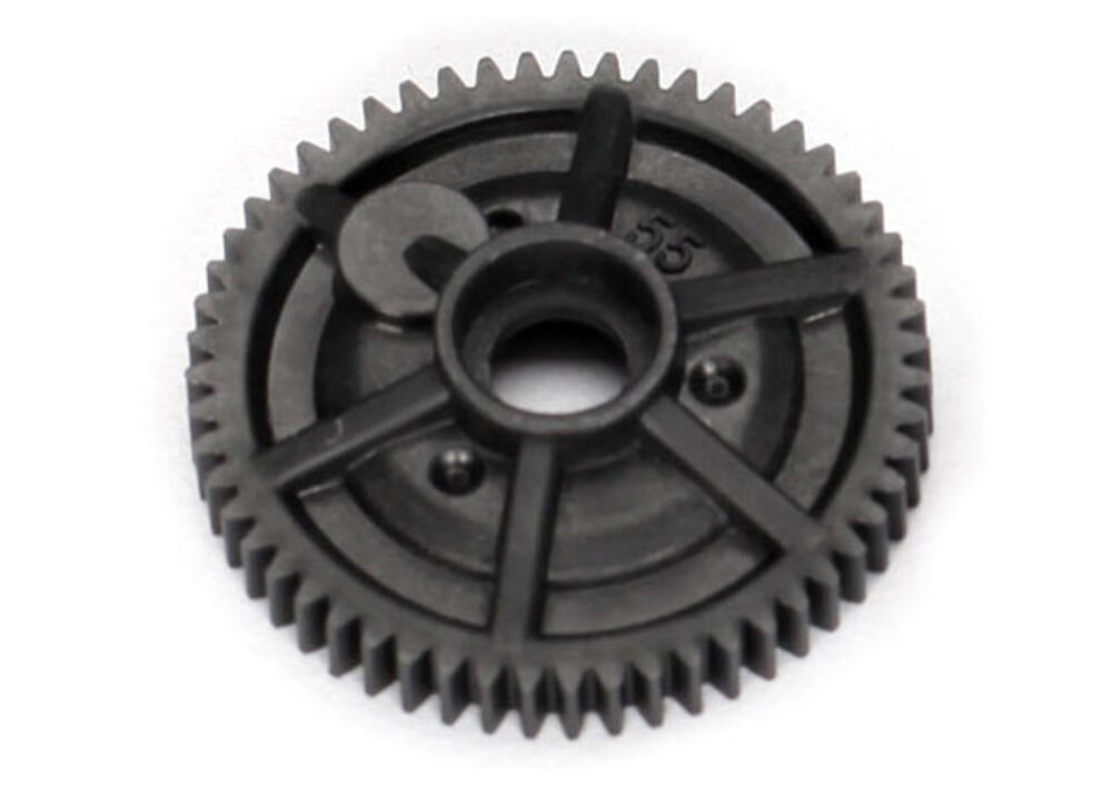 55-tooth spur gear (48-pitch) with telemetry magnet holder. Traxxas spur gears let you fine-tune the performance of your Traxxas model. Changing gear ratios can help balance acceleration and top speed for different running conditions. Please consult your owners manual for more information on recommended gearing options for your specific model.