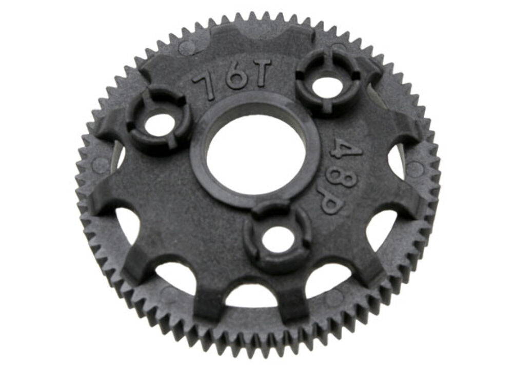 76-tooth spur gear (48-pitch) for Torque Control slipper clutches. Traxxas spur gears let you fine-tune the performance of your Traxxas model. Changing gear ratios can help balance acceleration and top speed for different running conditions. Please consult your owners manual for more information on recommended gearing options for your specific model.