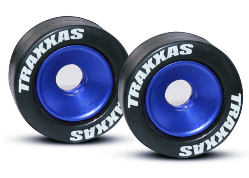 Machined from tough 6061-T6 aluminum, these wheelie bar wheels include 5x8 mm sealed ball bearings(4) for reduced friction and increased precision. Durable soft-compound tires reduce side-to-side movement for stable, consistent wheelies. Includes axle screws (2).