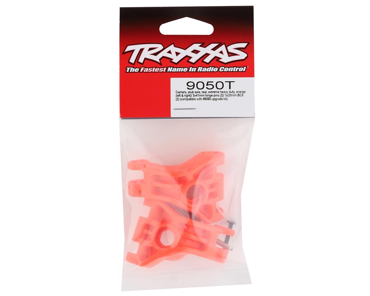 Traxxas Hoss/Rustler/Slash 4x4 Extreme Heavy Duty Hub Carriers. These hub carriers are intended for the Traxxas Hoss 4x4, Rustler 4x4 or Slash 4x4 when equipped with the optional Traxxas Heavy Duty Upgrade Kit (TRA9080). Package includes two hub carriers, two hinge pins and hardware.