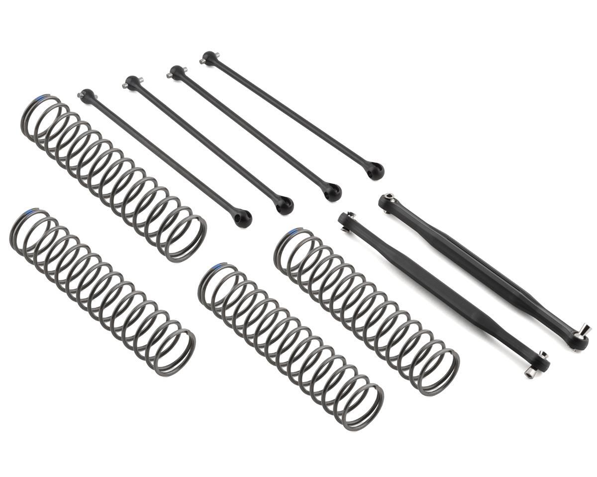 The Traxxas X-Maxx WideMaxx Suspension Kit builds on the X-Maxx’s legendary performance by widening the stance 60mm for even greater cornering stability. The X-Maxx WideMaxx kit includes extended versions of the extreme heavy-duty suspension arms. Molded from Traxxas' toughest composite material, these arms offer just enough flex to resist breaking, even in cold weather. Five different color options allow maximum customization of your X-Maxx. 1.346 rate shock springs replace the standard springs for optimal handing performance. Wider suspension links and steel driveshafts complete the package.
