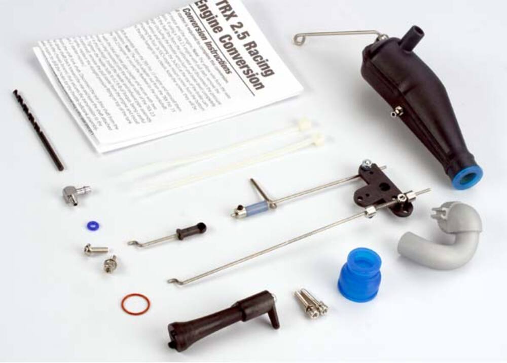Traxxas makes it easy to upgrade TRX Pro .15 nitro-powered T-Maxx models to the awesome power of the new TRX 2.5 Racing Engine. All the necessary hardware is included such as: header, pipe, pipe hanger, coupler, linkage, and additional components specific to each model. Major components come pre-assembled and pre-adjusted from the factory. Detailed instructions are included. (Engine sold separately)