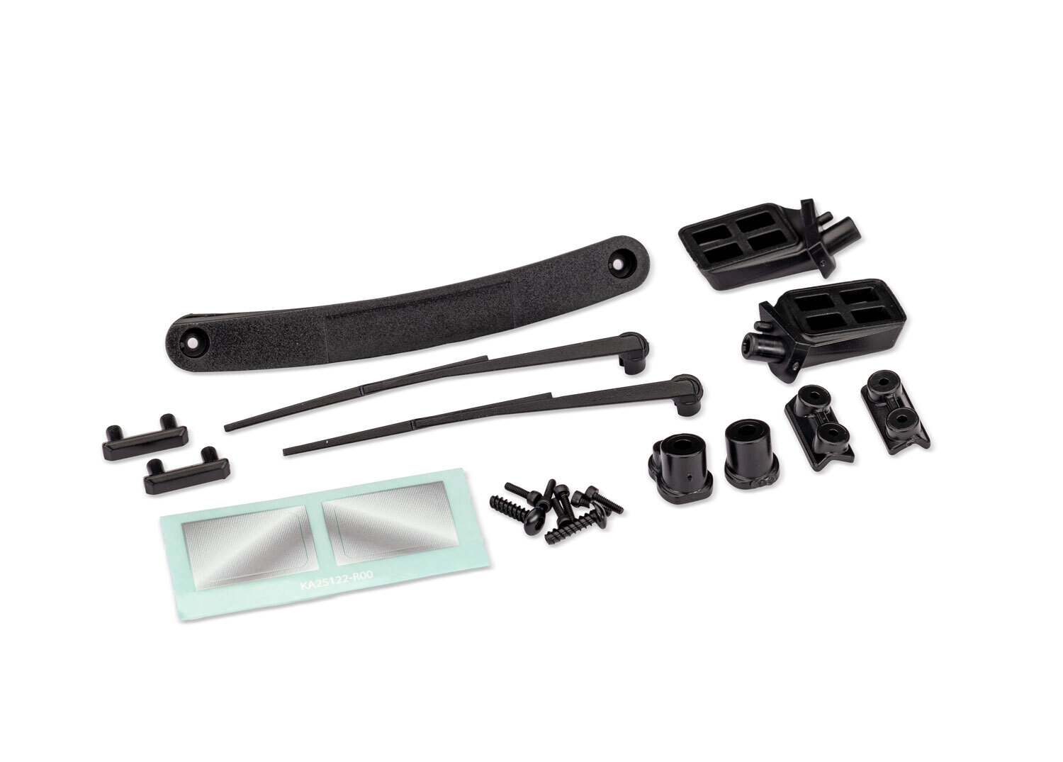 Product Description Warranty Info Replacement body trim pieces for the 11011-series TRX-4 Nissan Pathfinder body. Includes side mirrors, windshield wipers, door handles, 2.6x10 mm screws (2), and 1.6x6 mm screws (6). 1 Year