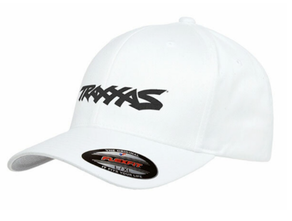 Keep it clean and classic at the track with this premium Traxxas White Flexfit Hat. Featuring a crisp white crown and bill contrasted by a bold black Traxxas logo, this cap offers a professional "factory team" appearance.