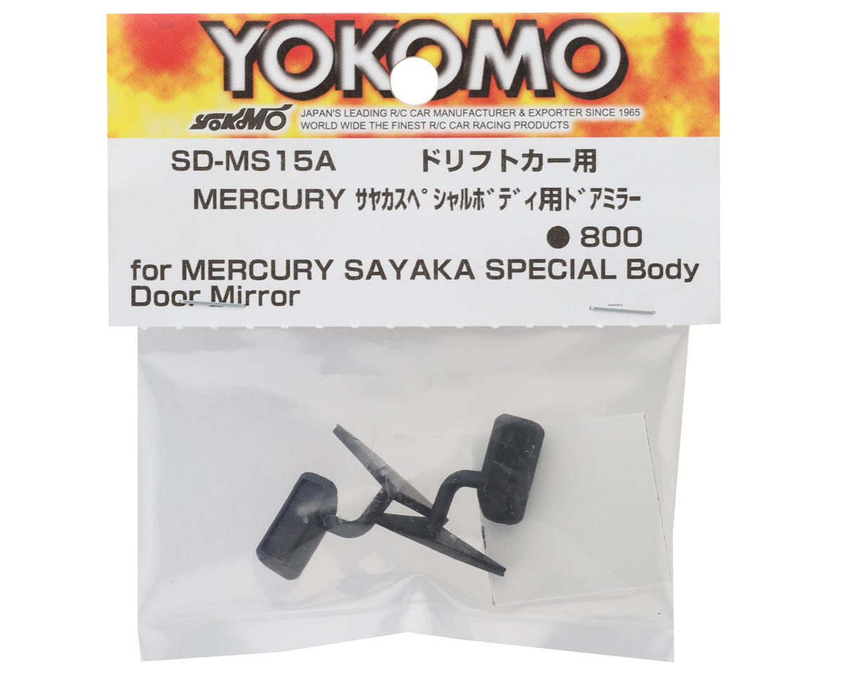 Yokomo MERCURY SAYAKA Special S15 Body Scale Side Mirrors. Specially designed for the MERCURY Sayaka Special S15 1/10 drift body to further enhance the scale details and realism of the S15 stunning body, these side mirrors feature a compact racing style and are a must have for your SAYAKA Special S15 body!