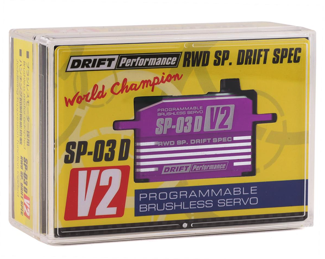 This is the Yokomo SP-03 D V2 Programmable Brushless Drift Servo. The SP-03D V2 is equipped with an updated program that offers faster speed, higher torque, and incredible holding power. In order to maximize performance of the brushless motor, this servo is capable of supporting up to 7.4V DC. While greatly improving the basic performance, the steering holding power is increased to enhance stability during cornering, with an incredible linear feeling while driving.